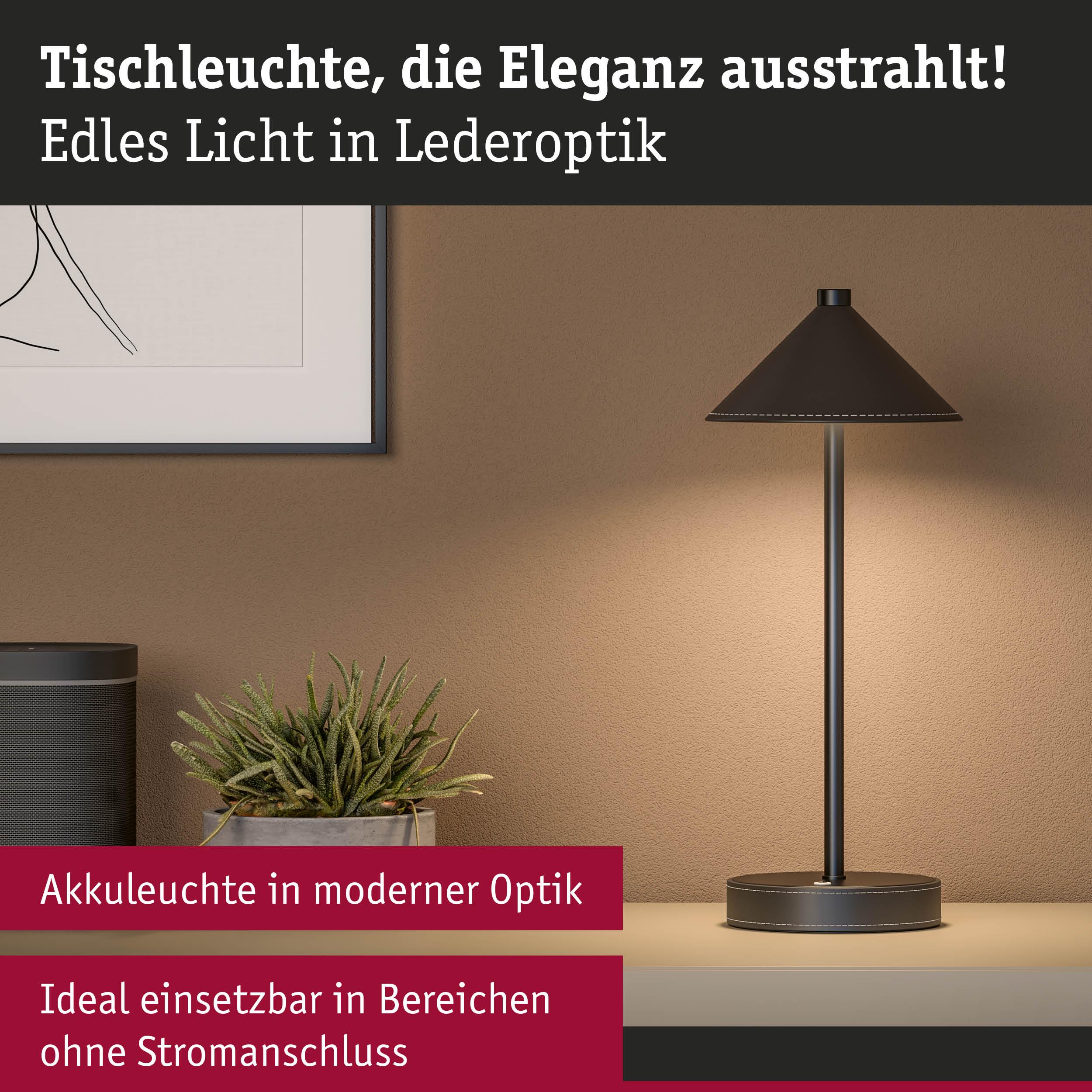 • Außergewöhnliche Tischleuchte im Lederlook mit Steppnähten für stilvolles Ambiente.