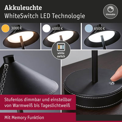 Mobile Tischleuchte Pellini White Switch 300lm 2W Schwarz matt