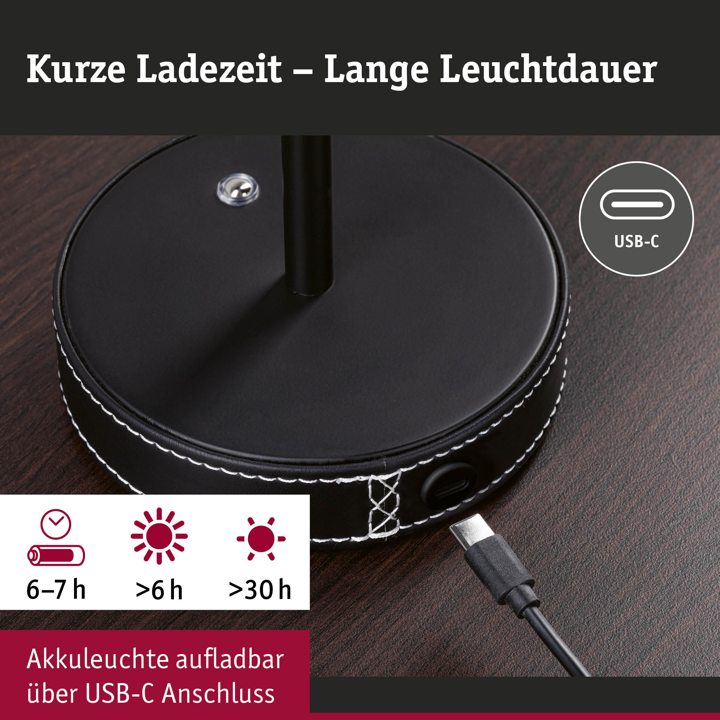 Diese außergewöhnliche Tischleuchte im Lederlook mit gesteppten Nähten ist nicht nur ein echter Hingucker, sondern auch äußerst praktisch und flexibel einsetzbar. Ob im Wohnzimmer, Schlafzimmer oder im Flur - die Mobile Tischleuchte Pellini in Schwarz matt sorgt für gemütliches Licht und setzt mit ihrem einzigartigen Design stilvolle Akzente. Dank des Touch-Schalters lassen sich verschiedene Weißlichtfarben einstellen. Zudem ist sie dimmbar, sodass das Licht individuell angepasst werden kann. Der Memory-Effekt der Leuchte merkt sich dabei immer die zuletzt genutzte Lichteinstellung - für maximalen Komfort. Die Mobile Tischleuchte Pellini überzeugt nicht nur mit ihrer Funktionalität, sondern auch mit ihrer praktischen Handhabung. Mit kurzer Ladezeit und langer Leuchtdauer ist sie jederzeit einsatzbereit und dank des wiederaufladbaren Akkus über USB-C umweltfreundlich und nachhaltig.