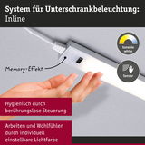 Das erweiterbare Set aus zwei Unterschrankleuchten Inline in dezentem Chrom matt mit einer Länge von 350x26mm bietet eine elegante Lösung für die Beleuchtung von Küchenarbeitsflächen. Die Möbelleuchten sorgen für eine optimale Ausleuchtung und schaffen eine angenehme Atmosphäre. Dank der berührungslosen Steuerung ermöglichen sie hygienisches Arbeiten. Das Starterset ist flexibel erweiterbar, maximal um ein Erweiterungsset. Dabei können verschiedene Längen kombiniert werden, um die passende Beleuchtungslösung zu finden. Mit der Tunable White Funktion kann das Licht individuell an die Bedürfnisse angepasst werden - sei es zum konzentrierten Arbeiten oder zum Wohlfühlen in gemütlicher Atmosphäre. Ein besonderes Highlight ist der Memory-Effekt, der die eingestellte Lichtfarbe speichert. Die Montage erfolgt einfach direkt an 230 V mit einem Steckertrafo.