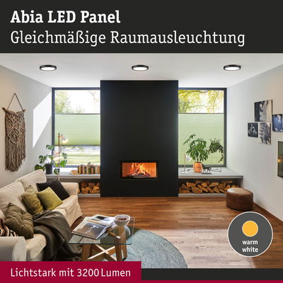 Moderne LED-Technik ermöglicht bei den runden Abia Paneln (3er-Set) in Schwarz matt eine Kombination von sehr flachem Aufbau und hervorragend gleichmäßiger Lichtverteilung. Die unaufdringliche Gestaltung und klare Linienführung harmonieren mit wohnlich-modernen Stilen sowie architekturbetontem Ambiente.