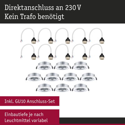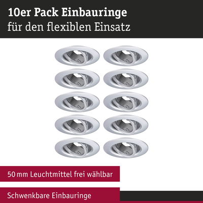 Einbauleuchte 10er-Set schwenkbar rund 90mm 30° GU10 max. 10x10W 230V dimmbar Chrom matt