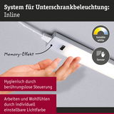 Das Erweiterungsset bestehend aus zwei Möbelleuchten Inline in dezentem Chrom matt und einer Länge von 550x26mm ist die perfekte Ergänzung für das Starterset Inline. Die Leuchten sind eine elegante Lösung, um Küchenarbeitsflächen optimal zu beleuchten. Die Leuchten bestehen aus leicht zu reinigenden hochwertigen Materialien, sodass sie problemlos sauber gehalten werden können. Der PIR-Sensor ermöglicht ein berührungsloses Ein- und Ausschalten, was zusätzlich zur hygienischen Arbeitsweise beiträgt. Mit der Tunable White Funktion kann das Licht individuell an die Bedürfnisse angepasst werden - sei es zum konzentrierten Arbeiten oder zum Wohlfühlen in gemütlicher Atmosphäre. Ein besonderes Highlight ist der Memory-Effekt, der die eingestellte Lichtfarbe speichert.