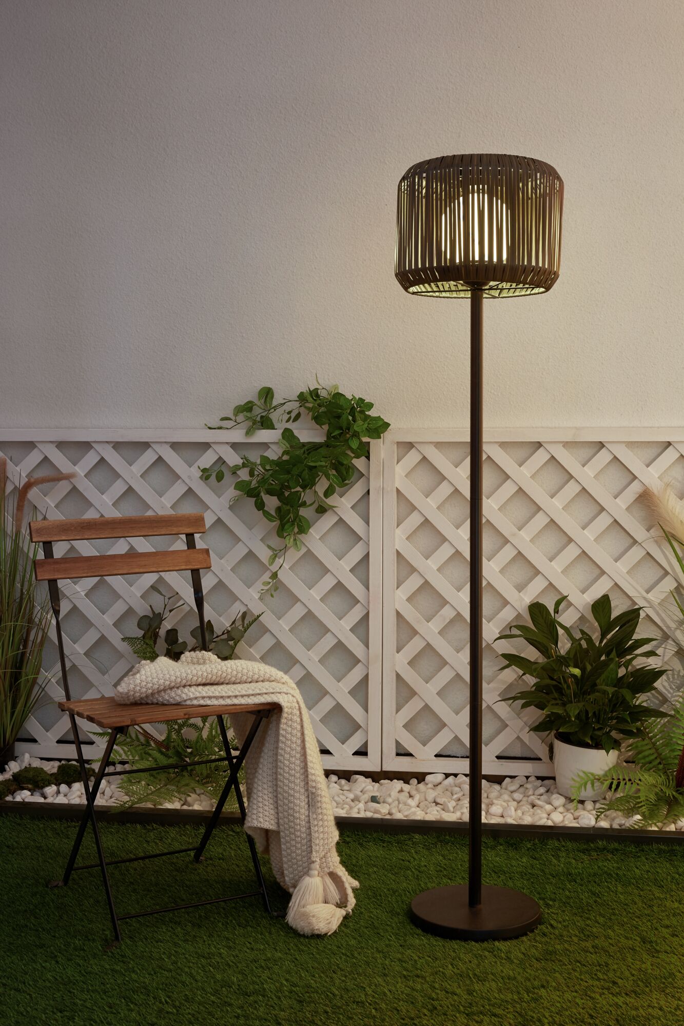 Die Solarstehleuchte Sunshine Elegance in Rattanoptik harmoniert perfekt mit dem Nordic Black Style und bringt behagliche Lichteffekte in die Outdoor-Lounge! Sie schafft eine gemütliche Atmosphäre und zaubert Lichthighlights auf dem Balkon oder im Garten. Die Stehleuchte lädt sich tagsüber im Sonnenlicht auf. Bei Dämmerung schaltet sich das Licht automatisch ein. Die Leuchtdauer beträgt bis zu 8 Stunden täglich. Die Solarstehleuchte ist aus hochwertigem Kunststoff hergestellt und somit widerstandsfähiger als Leuchten aus echtem Rattan. Eine leuchtende Kugel im Innenbereich schafft weiches, gleichmäßiges Licht. Solarstehleuchten bieten viele Vorteile: Sie sind perfekt für Balkon oder Garten geeignet, sie sind flexibel positionierbar dank Solartechnik, sie haben einen austauschbaren Akku und sind dank IP-Schutz 44 spritzwassergeschützt.