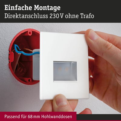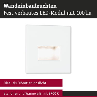 Set LED Wandeinbauleuchte Edge 3er-Set eckig 80x80mm 3x1,2W 3x50lm 230V 2700K Weiß matt