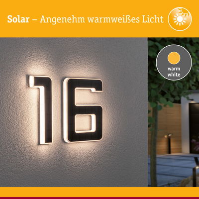 Set Solar LED Hausnummernleuchte inkl. wechselbarer Akku Nummer 16 3000K 2x6lm 2x0,2W Schwarz
