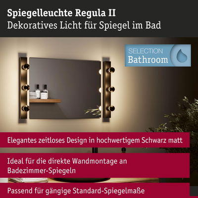 Set Spiegelleuchte Regula II inkl. Leuchtmittel 3-flammig IP44 E14 2700K 3x470lm 230V 3x4,5W dimmbar Schwarz/Kopfspiegel Schwarz matt