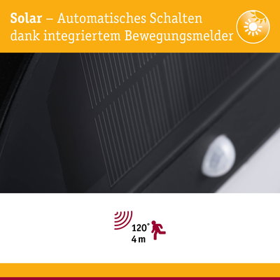 Solar LED Außenwandleuchte Elios Bewegungsmelder IP44 3000K 50lm Anthrazit