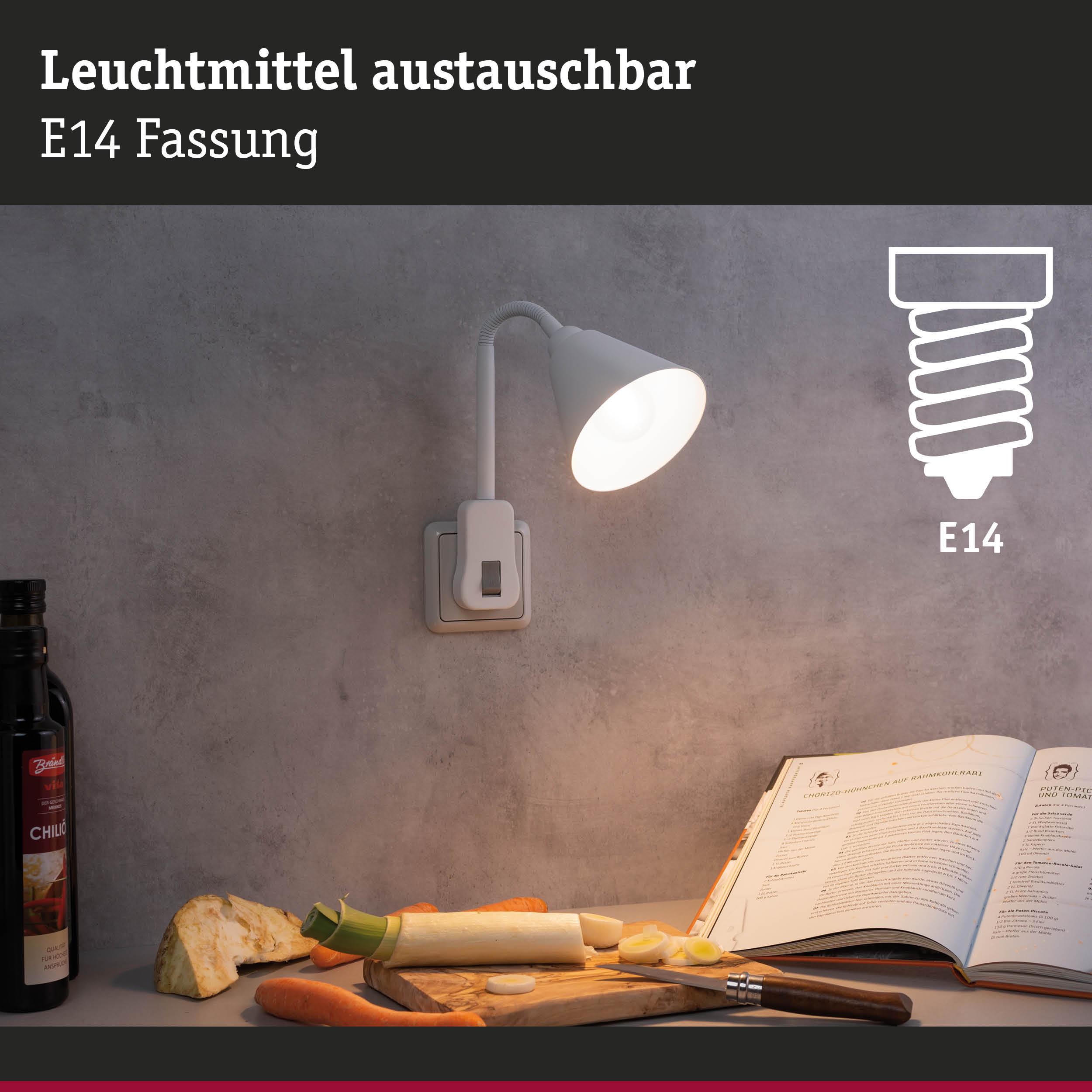 Steckerleuchte Junus Flexarm Weiß 230V E14