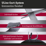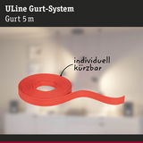 Der ULine-Gurt dient als Grundlage des 48V-Gurt-Systems. Er ist in zwei Längen (5 m und 10 m) und jeweils fünf Farben – von klassischem Schwarz bis außergewöhnlichem Orange – erhältlich, kann frei im Raum platziert und bei Bedarf mit einer Schere gekürzt werden. Zugehörige Leuchten lassen sich nach Belieben am Gurt arrangieren. Der 2,1 cm breite Gurt wird mit passenden Halterungen an Wand, Decke oder Boden befestigt. So lässt sich ein persönliches Lichtkonzept in wenigen Schritten umsetzen. Das reißfeste und haltbare Dacron-Material des Gurtes sorgt für eine lange Lebensdauer und hohe Belastbarkeit. Die Gurte sind beschichtet und einfach zu reinigen. Ein besonderes Highlight ist die innenliegende, unsichtbare Stromführung, die eine saubere Optik ohne sichtbare Drähte ermöglicht. Bei allen Gurten sind zwei Endkappen aus Silikon für einen ästhetischen Abschluss enthalten. Das ULine Gurt-System ist eine innovative Lösung für einzigartige Lichterlebnisse in allen Raumdimensionen und ermöglicht eine gezielte Lichtinszenierung an Wänden, Decken und Böden.