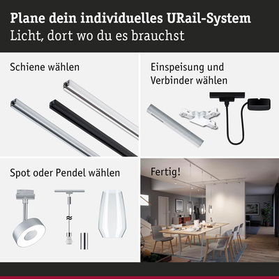 Diese 230 Volt Mitteleinspeisung in Chrom matt mit integriertem Zigbee 3.0-Steuergerät schaltet oder dimmt das gesamte URail System. Die Einspeisung wird direkt über den Stromanschluss angebracht. Durch ihr filigranes Design integriert sie sich perfekt in die Optik der Schiene. Sie ist eine von zahlreichen Systemteilen aus der URail Serie. Zusammen mit weiteren Komponenten lässt sich ein persönliches 230 Volt URail Schienensystem gestalten. HINWEIS: Dieser Artikel ist nicht mit allen festverbauten LEDs und LED-Leuchtmitteln kompatibel und funktioniert nur in Verbindung mit stufenlos dimmbaren Leuchten. Die Dimmer-Kompatibilität kann aus den technischen Daten der Leuchten/Leuchtmittel entnommen werden.